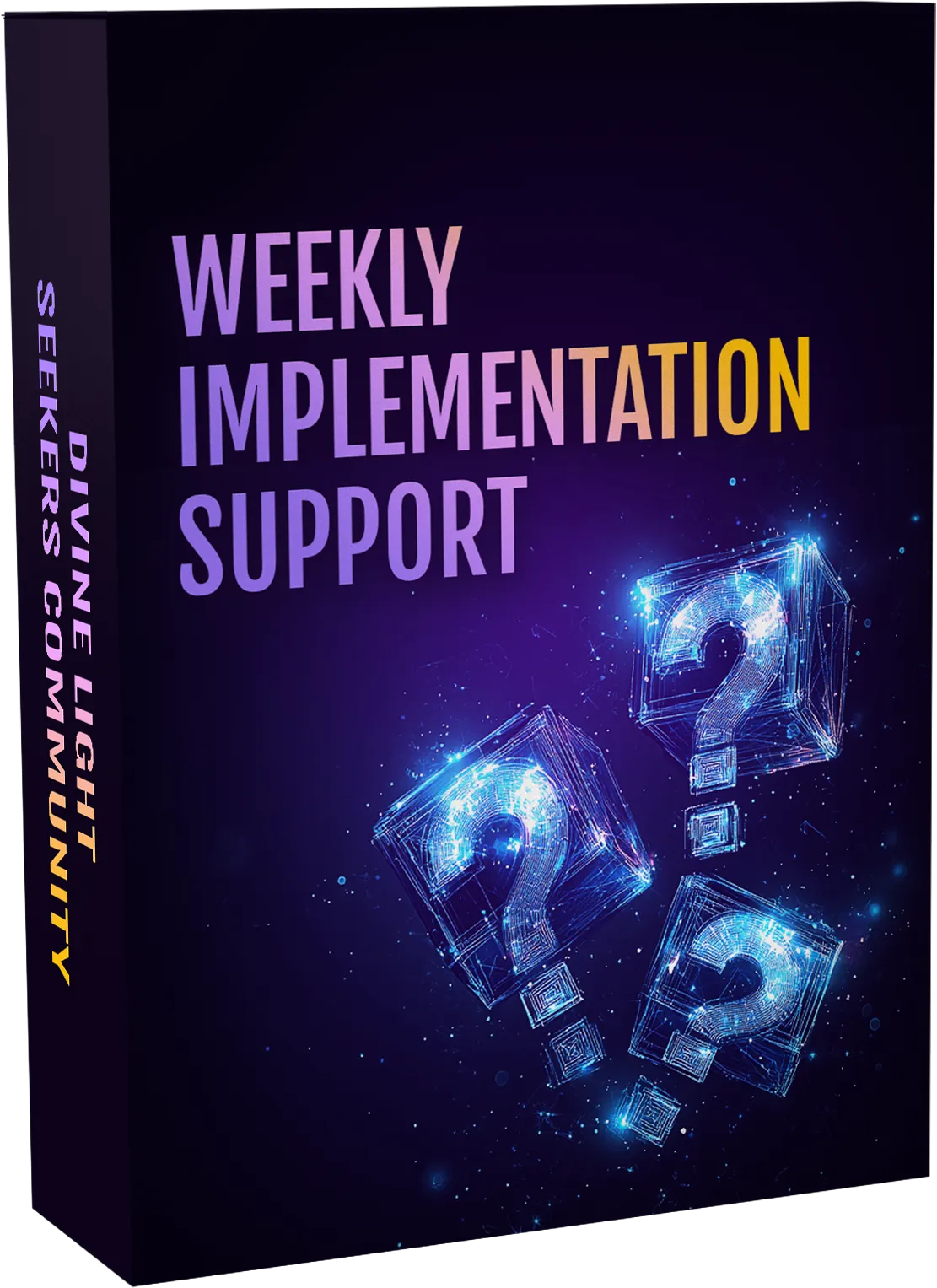 You'll have access to the Divine Light Seekers community for 21 days, weekly group Q&A sessions, and the Weekly Divine Energy Activation ceremony where you can ask questions and share experiences.